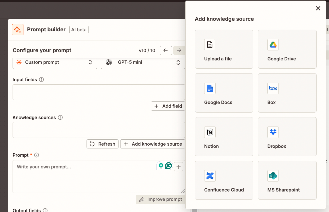 Zapier is constantly improving its built-in AI step - it’s fast becoming something I use in almost every zap I build - and one cool feature added recently is the ability to add a ‘knowledge source’ from one of these supported apps.